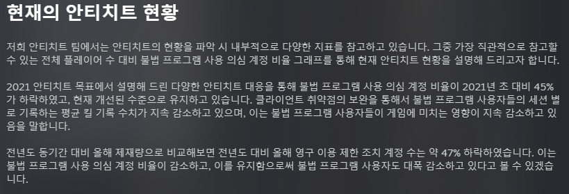 핵 유저들을 밴 시키는 시스템을 사용하고 있습니다.