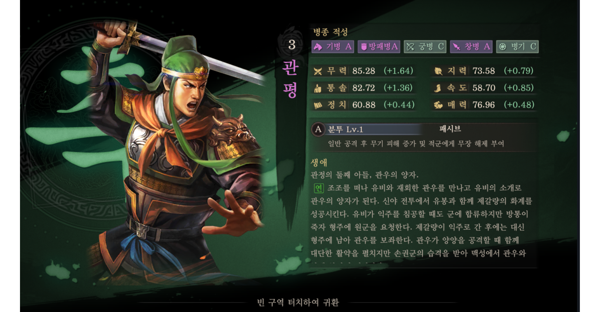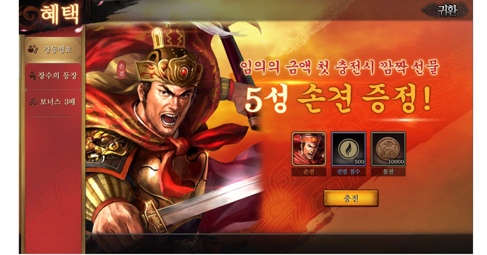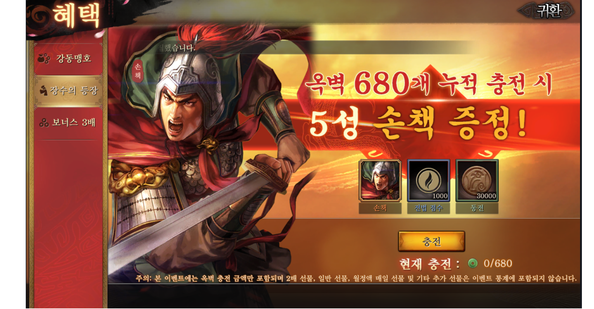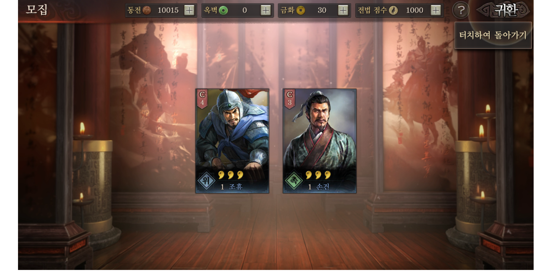 손건은 3성 치고는 그래도 좋은 편이어서 초반에 쓸만해요!