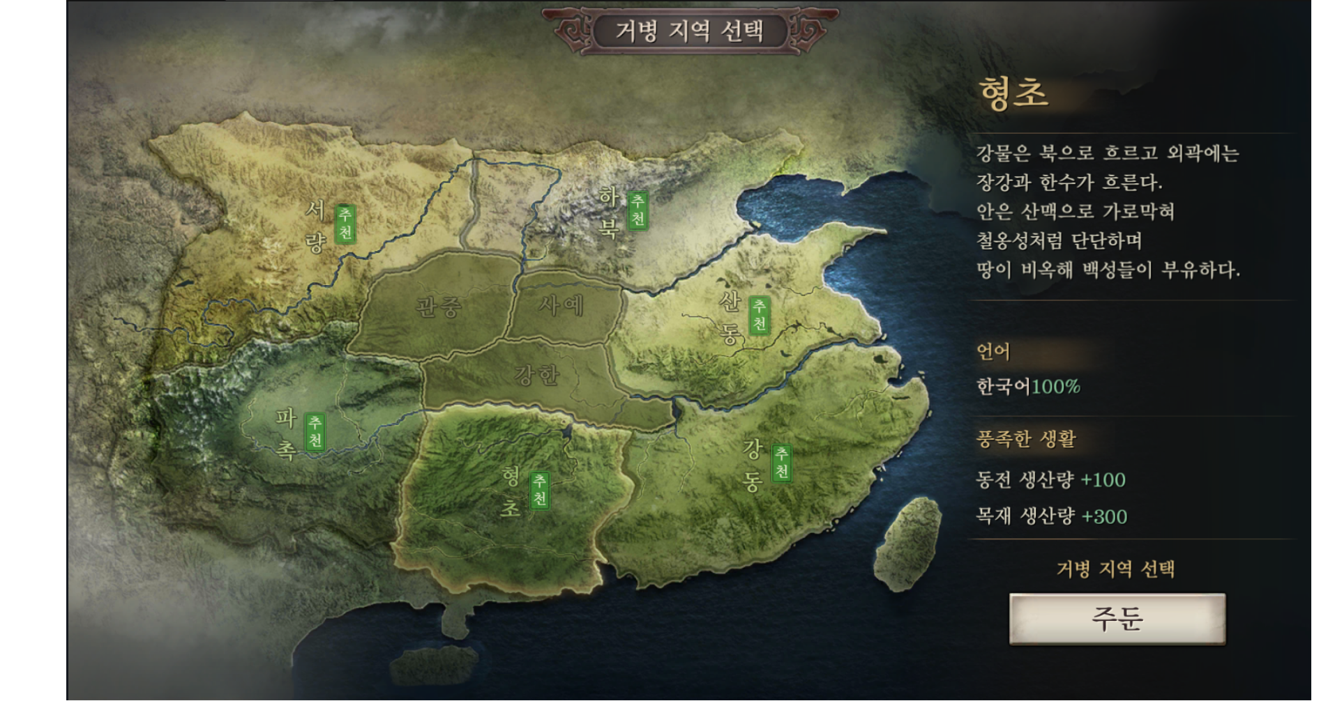 거병 지역 역시 지역마다 추가로 주는 어드벤티지가 달라요!