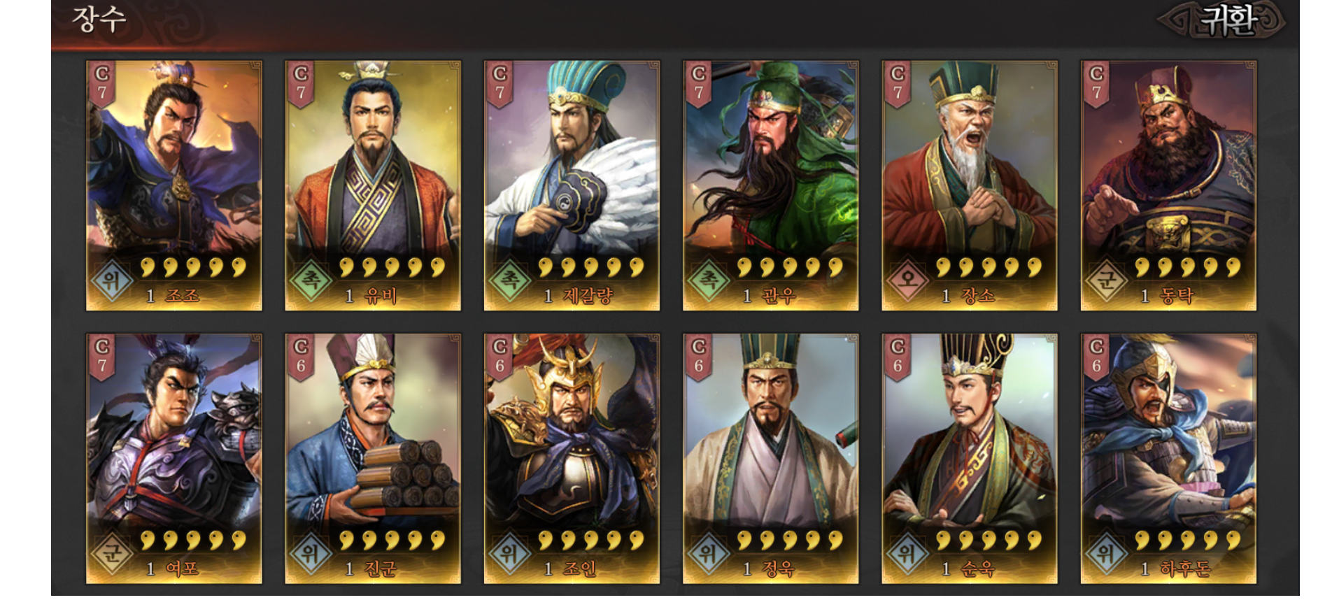 그런데 위의 장수들 역시 제가 한 번도 뽑아 본 적이 없어요.